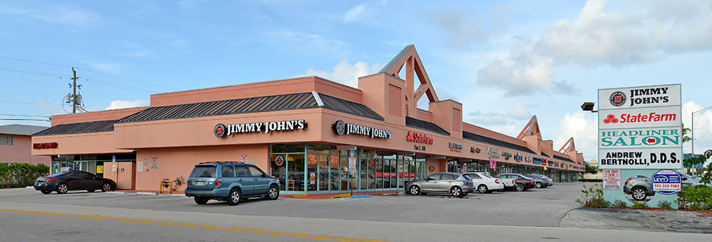 The Jimmy John’s Plaza is a 30,000 square foot neighborhood shopping plaza located on East Commercial Boulevard in Fort Lauderdale. The strip of retail stores are just west of Federal Highway and east of Dixie Highway in a very well established retail district with great parking of 5 spaces per 1,000 square feet, direct exposure to East Commercial Boulevard and a heavy traffic count of over 53,000 vehicles daily. The shopping center was built in 1975 and is zoned CB for Community Business zoning. The construction is solid concrete with glass storefronts. The individual stores range from 975 up to 1,900 square feet. There are four large pylon signs facing east and west and some of the tenants include Jimmy John’s, a pharmacy, hair and nail salons, and more.